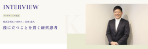 経営者プライムに、代表取締役・山崎晶久 のインタビュー記事が掲載されました。 記事では、KOTONAの強みや大切にしている考え方が紹介されています。ぜひご覧ください。 記事はコチラから:https://keieisha- […]
